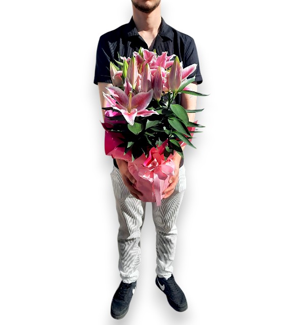 Beyaz lilyumların gölgesinde kalmayacak bir güzellik: Pembe lilyum! Gören gözleri kendine hayran bırakan Lila Pembe Buketli Beyaz Polimer Saksıda Pembe Lilyum aranjmanı, şimdi karşınızda! Lila ve canlı pembe renkteki buket kağıdına sarılı beyaz Polimer içerisinde sergilenen pembe lilyumlar, şefkati ve sadakati simgeliyor. Açık pembe kurdele detayı, aranjmana sofistike bir dokunuş katıyor. Pembe lilyumların zarafetini en özel şekilde hissedeceğiniz bu aranjman, yaşam alanlarını güzelleştirmek için hazır! Siz de bu özel hediyeyi sevdiklerinize hediye ederek, onları mutlu edebilir ve evlerini, ofislerini renklendirebilirsiniz! Sevdiklerinize olan hislerinizi dile getirmenin zarif yolu olan bu aranjmanı; doğum günleri, yıl dönümleri veya sadece içten bir teşekkür için gönül rahatlığıyla tercih edebilirsiniz. Siparişiniz sonrasında çıkacak “Not oluşturma” sayfasında birkaç cümlelik not oluşturarak hediyenizi daha anlamlı bir hale getirmeyi unutmayın.