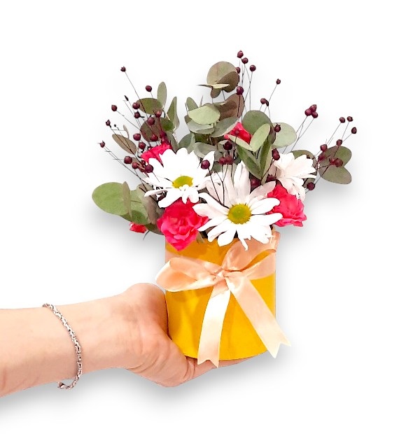 Sevdiklerinize verebileceğiniz en özel hediye, hiç beklemedikleri zamanda vereceğiniz hediyedir. Sarı Saksıda Pembe Güller ve Beyaz Papatyalar aranjmanı, sevdiklerinize sürpriz yapmak istediğinizde ilk tercih edeceğiniz aranjman oluyor! Beyaz kurdele ile süslenen sarı saksıda bir araya gelen pembe çardak güller ve beyaz biçme papatyalar, en özel duygularınızı anlatmanız için size yardımcı oluyor. Mor luna ve okaliptus ise, aranjmana ayrı bir renk katıyor. Bu aranjman, sevdiklerinizi mutlu etmeniz için baştan aşağıya özenle hazırlanıyor. ümraniye çiçek,ataşehir çiçek,üsküdar çiçek,çiçek,finanskent çiçek teslimat saatlerini seçerek Size de bu özel aranjmanı sevdiklerinize hediye etmek ve onların gününü güzelleştirmek kalıyor! Siz de Sarı Saksıda Pembe Güller ve Beyaz Papatyalar aranjmanını özel günlerde veya sadece sevginizi ifade etmek istediğiniz herhangi bir günde tercih ederek, sevdiklerinizin yüzünde unutulmaz bir tebessüm yaratabilirsiniz. Siparişiniz sonrasında çıkacak “Not oluşturma” sayfasında birkaç cümlelik not oluşturarak, hediyenizi daha anlamlı bir hale getirmeyi unutmayın.