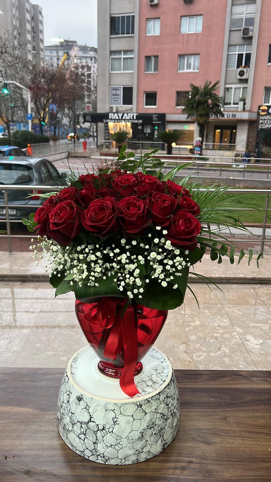 Ürün İsmi: Kalp Saksıda 23 Adet Gül Tasarımı